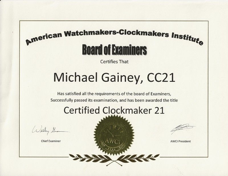 At Master Clock Repair we preserve the stories and memories that come with your cherished clocks. Family owned and operated by Central Ohio's most experienced AWCI Certified Clock Maker, Michael Gainey has over 45 years of expertise to repair and restore antique and modern clocks of any brand and almost any type. Having made over 22,000 house calls, repairing grandfather clocks in the home is his specialty. With friendly, honest, and professional service, we provide top-notch clock repair for clocks of all ages throughout Ohio. Trust your clocks to a certified expert. Call Master Clock Repair today. Let us keep your clock ticking for generations! Experience our extensive and informative main website by clicking on “Visit Full Website” above.